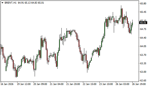 Vývoj ceny ropy Brent (1hodinový graf - H1):
