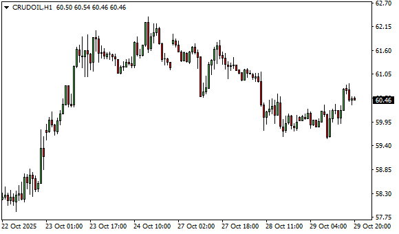 Vývoj ceny ropy WTI (1hodinový graf - H1):