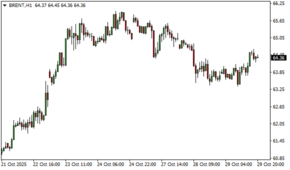 Vývoj ceny ropy Brent (1hodinový graf - H1):