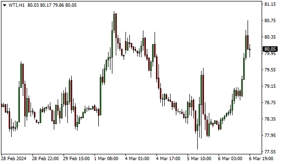 Vývoj ceny ropy WTI (1hodinový graf - H1):
