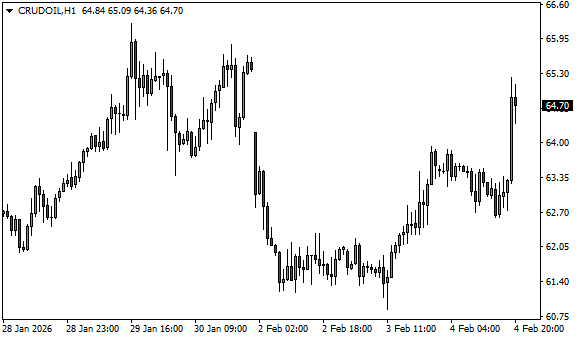 Vývoj ceny ropy WTI (1hodinový graf - H1):