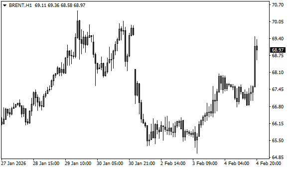 Vývoj ceny ropy Brent (1hodinový graf - H1):