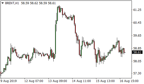 Vývoj ceny ropy Brent (1hodinový graf – H1):