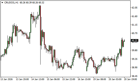 Vývoj ceny ropy WTI (1hodinový graf - H1):
