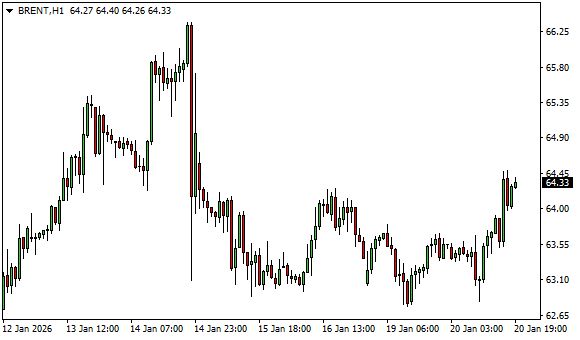 Vývoj ceny ropy Brent (1hodinový graf - H1):
