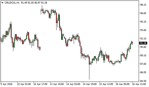 Vývoj ceny ropy WTI (1hodinový graf - H1):