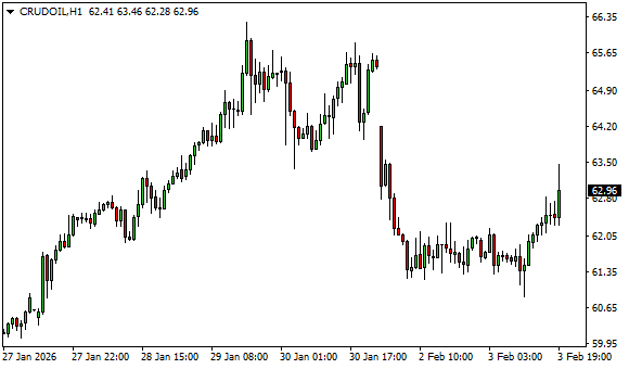 Vývoj ceny ropy WTI (1hodinový graf - H1):