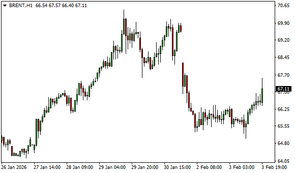 Vývoj ceny ropy Brent (1hodinový graf - H1):