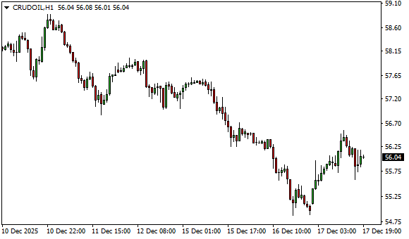 Vývoj ceny ropy WTI (1hodinový graf - H1):