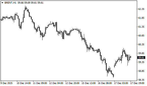 Vývoj ceny ropy Brent (1hodinový graf - H1):