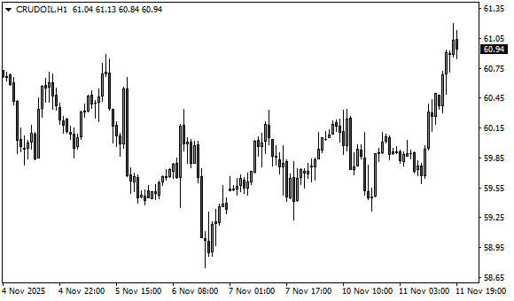Vývoj ceny ropy WTI (1hodinový graf - H1):