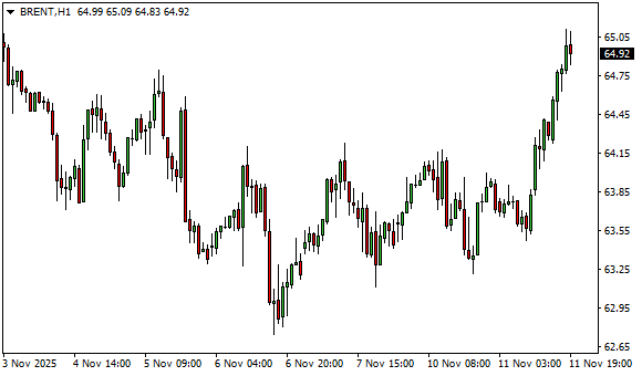 Vývoj ceny ropy Brent (1hodinový graf - H1):