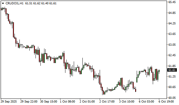 Vývoj ceny ropy WTI (1hodinový graf - H1):