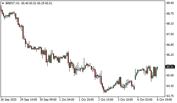 Vývoj ceny ropy Brent (1hodinový graf - H1):