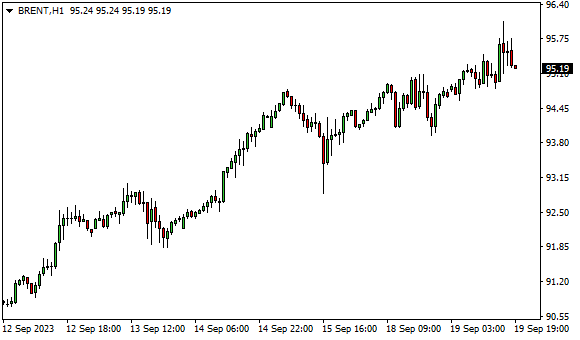 Vývoj ceny ropy Brent (1hodinový graf - H1):