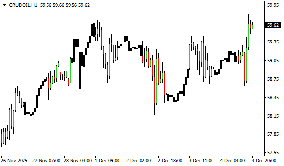 Vývoj ceny ropy WTI (1hodinový graf - H1):