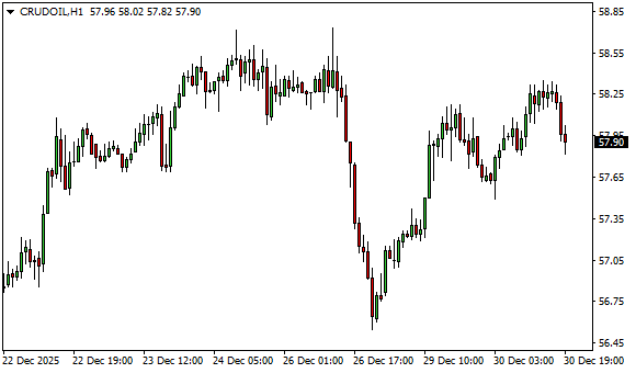 Vývoj ceny ropy WTI (1hodinový graf - H1):