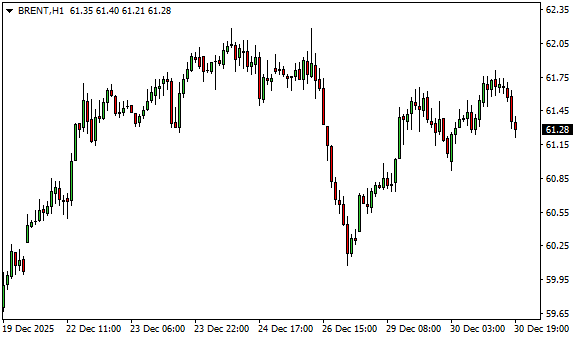 Vývoj ceny ropy Brent (1hodinový graf - H1):