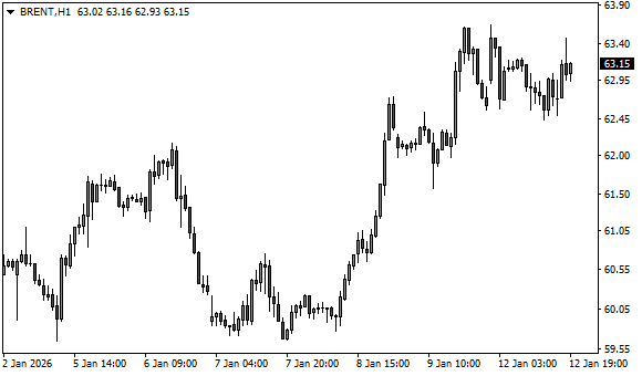 Vývoj ceny ropy Brent (1hodinový graf - H1):