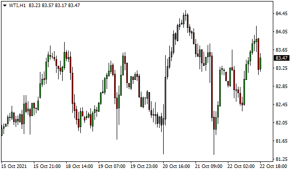 Vývoj ceny ropy WTI (1hodinový graf - H1):