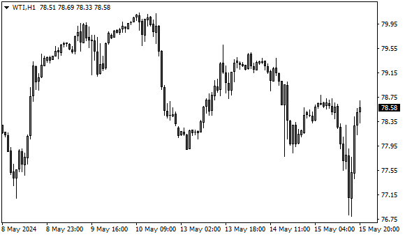 Vývoj ceny ropy WTI (1hodinový graf - H1):