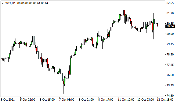 Vývoj ceny ropy WTI (1hodinový graf – H1):
