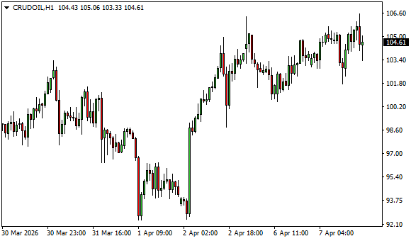 Vývoj ceny ropy WTI (1hodinový graf - H1):