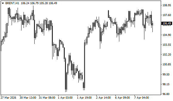 Vývoj ceny ropy Brent (1hodinový graf - H1):