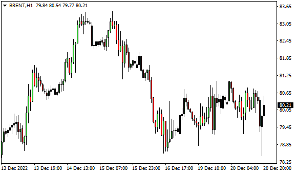 Vývoj ceny ropy Brent (1hodinový graf - H1):