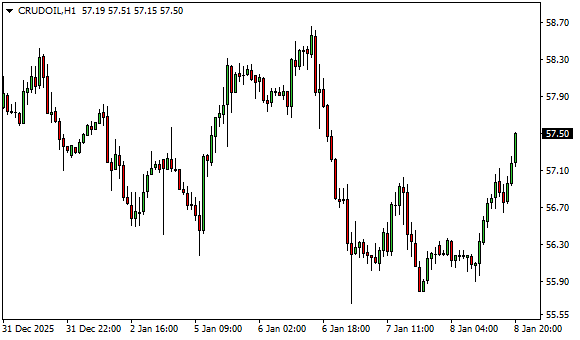 Vývoj ceny ropy WTI (1hodinový graf - H1):