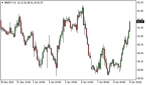 Vývoj ceny ropy Brent (1hodinový graf - H1):
