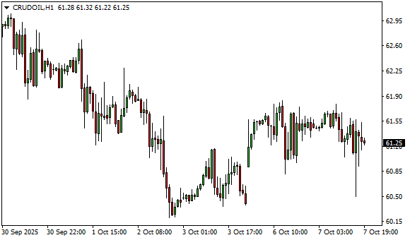 Vývoj ceny ropy WTI (1hodinový graf - H1):