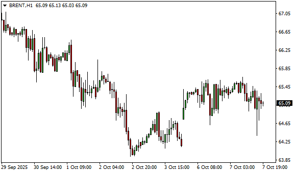 Vývoj ceny ropy Brent (1hodinový graf - H1):