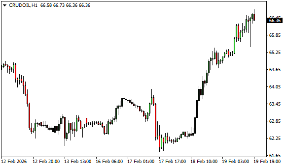 Vývoj ceny ropy WTI (1hodinový graf - H1):