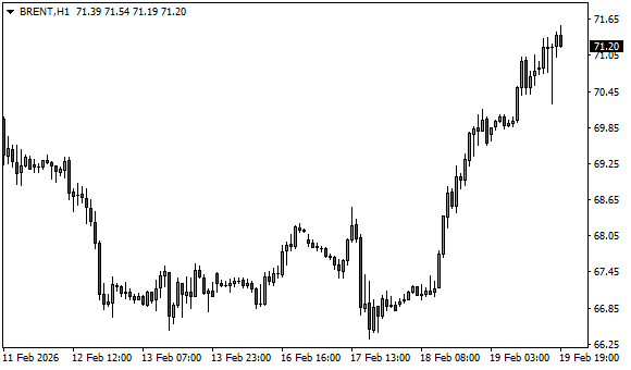 Vývoj ceny ropy Brent (1hodinový graf - H1):