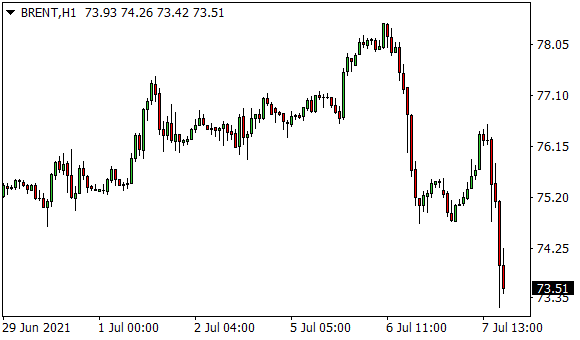 Vývoj ceny ropy Brent (1hodinový graf – H1):