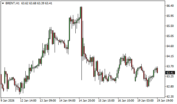 Vývoj ceny ropy Brent (1hodinový graf - H1):