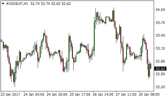 Vývoj ceny ropy WTI (1hodinový graf – H1):