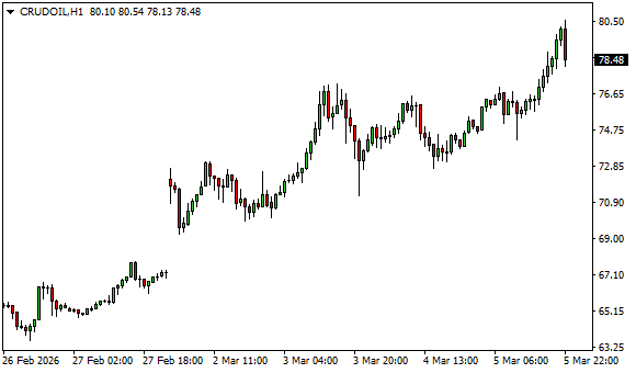 Vývoj ceny ropy WTI (1hodinový graf - H1):