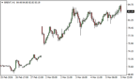 Vývoj ceny ropy Brent (1hodinový graf - H1):