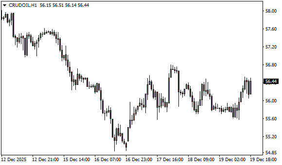 Vývoj ceny ropy WTI (1hodinový graf - H1):