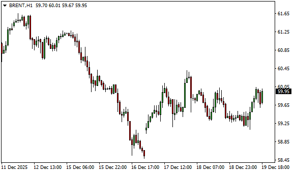 Vývoj ceny ropy Brent (1hodinový graf - H1):