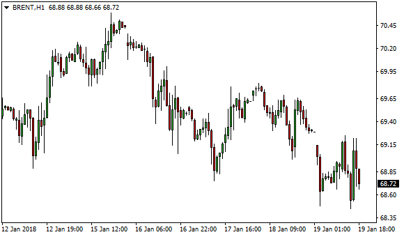 Vývoj ceny ropy Brent (1hodinový graf – H1):