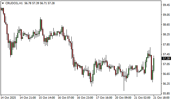 Vývoj ceny ropy WTI (1hodinový graf - H1):