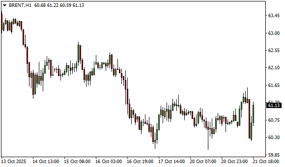 Vývoj ceny ropy Brent (1hodinový graf - H1):