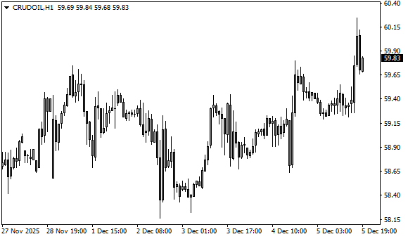 Vývoj ceny ropy WTI (1hodinový graf - H1):