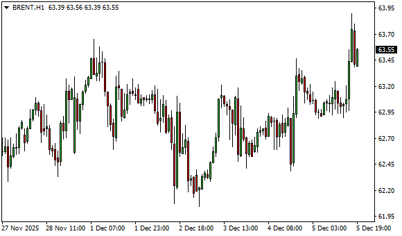 Vývoj ceny ropy Brent (1hodinový graf - H1):