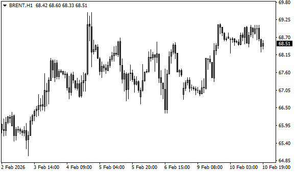 Vývoj ceny ropy Brent (1hodinový graf - H1):