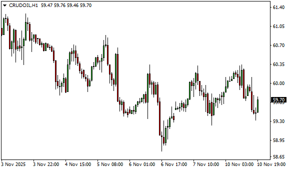Vývoj ceny ropy WTI (1hodinový graf - H1):