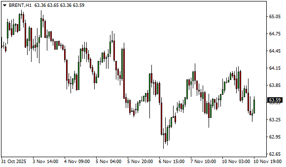 Vývoj ceny ropy Brent (1hodinový graf - H1):